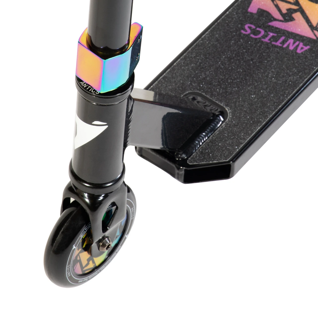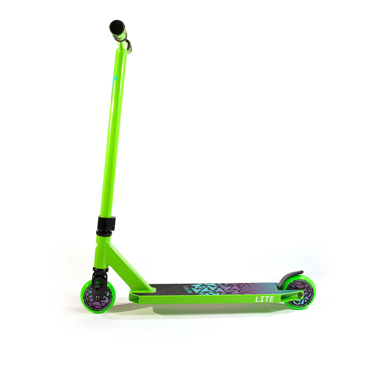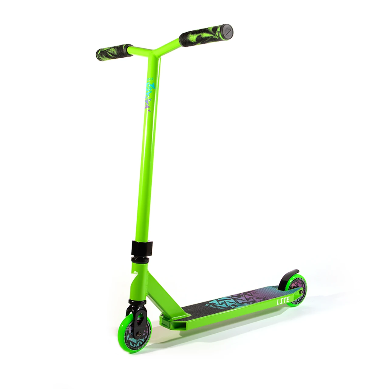 For the 2021 season, the Lite complete will feature a 3.94“ x 19” boxed deck, Antics Y bars and our unique 110mm plastic full core wheels. If the great new components were not enough, the Lite is finished off with some super cool red, lime green and black oilslick colorways, plus they have the colorful graphics to match.