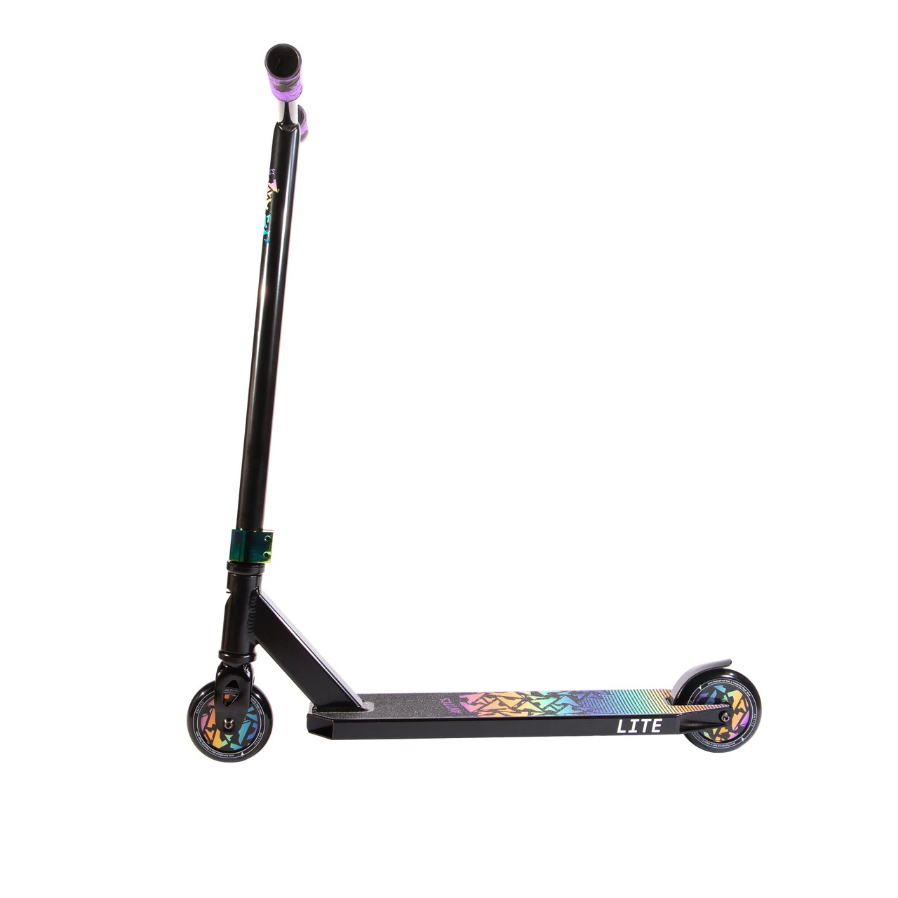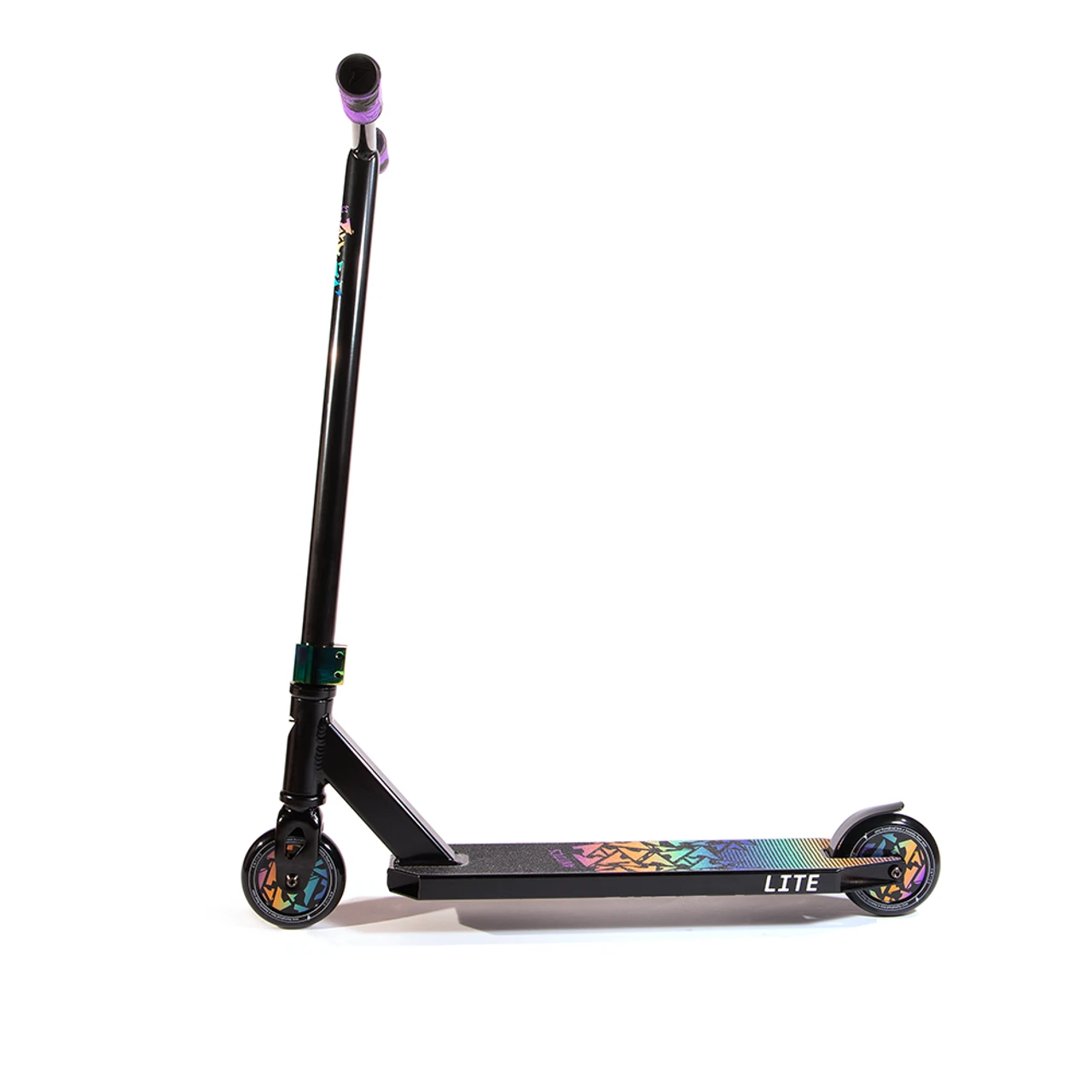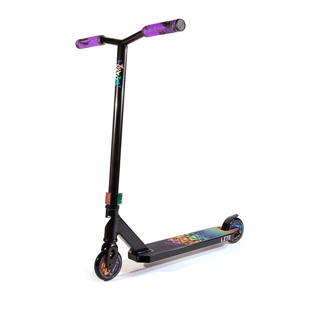 For the 2021 season, the Lite complete will feature a 3.94“ x 19” boxed deck, Antics Y bars and our unique 110mm plastic full core wheels. If the great new components were not enough, the Lite is finished off with some super cool red, lime green and black oilslick colorways, plus they have the colorful graphics to match.