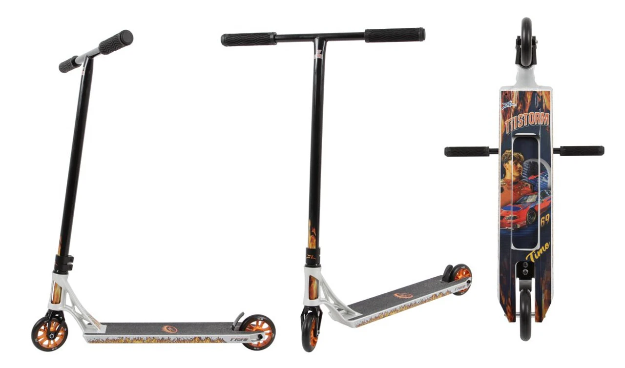 The Timo Complete is light weight yet super strong and comes with a sturdy Chromoly bar and fork designed to withstand the heaviest of riding. The balanced feeling of the deck makes for a comfortable cruise no matter what terrain you choose. Timo’s deck features a new headtube design that allows for maximum foot space and increased noseblunt/crook room. It is covered by a 90 day warranty and lifetime warranty for the wheels against dehubbing.
