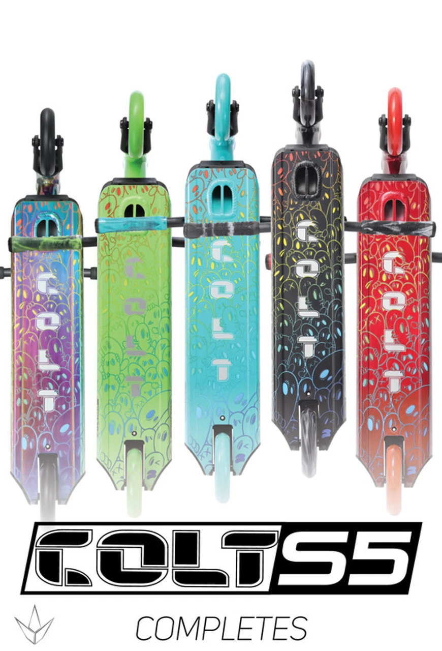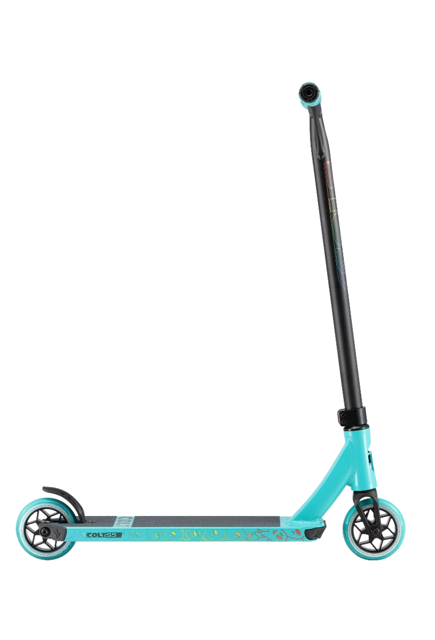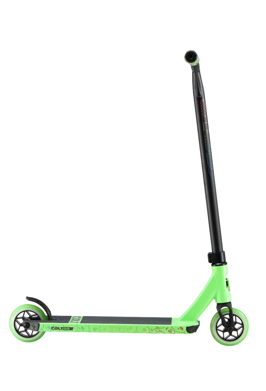 The Colt is back for 2022 with a brand new look, and premium quality. This year’s Colt comes with some vital upgrades, and Envy has deemed it the “Little Weapon” of their lineup. The Series 5 Colt is a great option for riders who don’t need the larger parts on the other scooters in Envy’s lineup, and for those who seem likely to outgrow the Envy One. The Series 5 Colt takes inspiration from prior Prodigy models with its 4130 cromoly steel bars. The material and supporting gussets make for an extremely strong, and reliable bar. The Colt Deck comes in at 4.7″ wide, and 19.5″ long. This size makes for an extremely responsive, light, and easy to maneuver deck. These attributes will make learning new tricks a breeze. These parts roll on the Envy Diamond wheels, which are 110mm in diameter, and 24mm in width. All these parts are held together by the industry’s most trusted compression system, IHC. This is also where the Colt has received its most important upgrade, that being the Prodigy fork! The new fork is capable of fitting larger wheels, and is much lighter than the previous Colt fork. IHC is extremely easy to upkeep, and provides reliability without the extra weight that other compression systems bring. These parts together create a weight of 8.25 lbs. Now who is the Colt for? The Series 5 Colt is a great option for riders who don’t need the larger parts on the other scooters in Envy’s lineup, and especially for those who seem likely to outgrow the Envy One.
