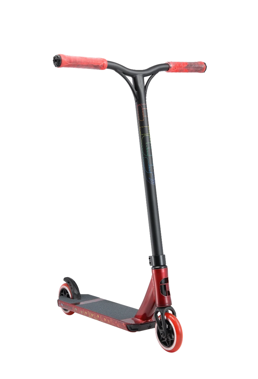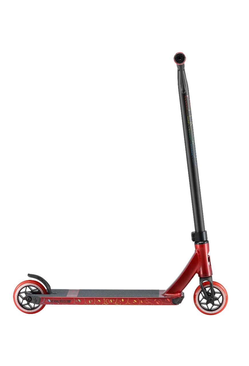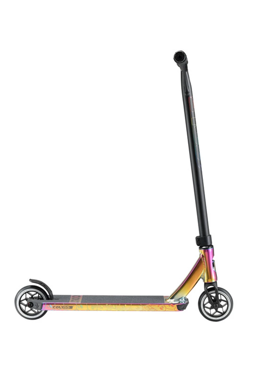 The Colt is back for 2022 with a brand new look, and premium quality. This year’s Colt comes with some vital upgrades, and Envy has deemed it the “Little Weapon” of their lineup. The Series 5 Colt is a great option for riders who don’t need the larger parts on the other scooters in Envy’s lineup, and for those who seem likely to outgrow the Envy One. The Series 5 Colt takes inspiration from prior Prodigy models with its 4130 cromoly steel bars. The material and supporting gussets make for an extremely strong, and reliable bar. The Colt Deck comes in at 4.7″ wide, and 19.5″ long. This size makes for an extremely responsive, light, and easy to maneuver deck. These attributes will make learning new tricks a breeze. These parts roll on the Envy Diamond wheels, which are 110mm in diameter, and 24mm in width. All these parts are held together by the industry’s most trusted compression system, IHC. This is also where the Colt has received its most important upgrade, that being the Prodigy fork! The new fork is capable of fitting larger wheels, and is much lighter than the previous Colt fork. IHC is extremely easy to upkeep, and provides reliability without the extra weight that other compression systems bring. These parts together create a weight of 8.25 lbs. Now who is the Colt for? The Series 5 Colt is a great option for riders who don’t need the larger parts on the other scooters in Envy’s lineup, and especially for those who seem likely to outgrow the Envy One.