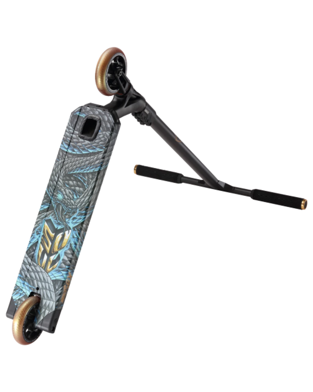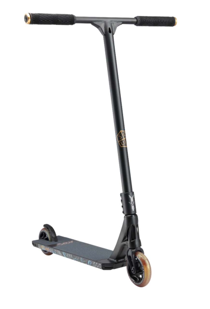 The scooters within the KOS Series is Envy’s top of the line models. Every model in the KOS line is made of all after market products, and was upgraded for the year of 2022. The KOS Soul uses the cromoly steel Soul bar, AOSv4 inspired deck, Declare v2 SCS fork, Omen SCS Clamp, and the Envy Tri Bearing Wheels. The combination of these parts make the Soul a pro scooter that can excel in every style of riding, but is specifically designed to be a street focused scooter. The AOSv4 inspired deck is made of 6061-T6 Aluminum and comes in at 5.5″ wide, and 22″ long. This size is the largest to ever come on an Envy pro scooter, and proves Envy’s dedication to both styles of riding. It also uses Envy’s custom Boxed Inserts that provide a larger space to lock into grinds, and will prevent the deck from caving in due to grinding. These Boxed Inserts also only require ONE allen key to adjust, as threads are built into one of the inserts. So extremely consumer friendly, and will keep riders out of tool boxes! The steel Soul bar is one of the most reliable bars in Envy’s lineup due to the material, and supporting gussets. These parts roll on the Envy Tri Bearing Wheels, which are 120mm in diameter, and 30mm wide. This larger size will yield greater speeds, and provide more clearance for the bottom, and sides of your deck. As the name suggests, Tri Bearing wheels come with 3 bearings rather than 2. The additional bearing is designed to improve impact distribution, and increase the lifespan of your bearings. Finally, all of these parts are held together by the industry’s best compression system, SCS. The specific name is the Declare fork, and Omen SCS clamp. SCS is extremely easy to upkeep, and will require the least amount of maintenance when compared to other compressions. This means you’ll spend less time messing with bolts, and more time actually riding. All of these parts together create a weight of 8.8 lbs. Now who is the Soul for? I would recommend this scooter to riders who want to focus on street style riding. The scooter isn’t too big or heavy to do park style tricks, but inexperienced riders may have trouble doing them. In other words, if you’re not sure which style of riding you want to do, I would go with the Charge or Heist due to their versatility.