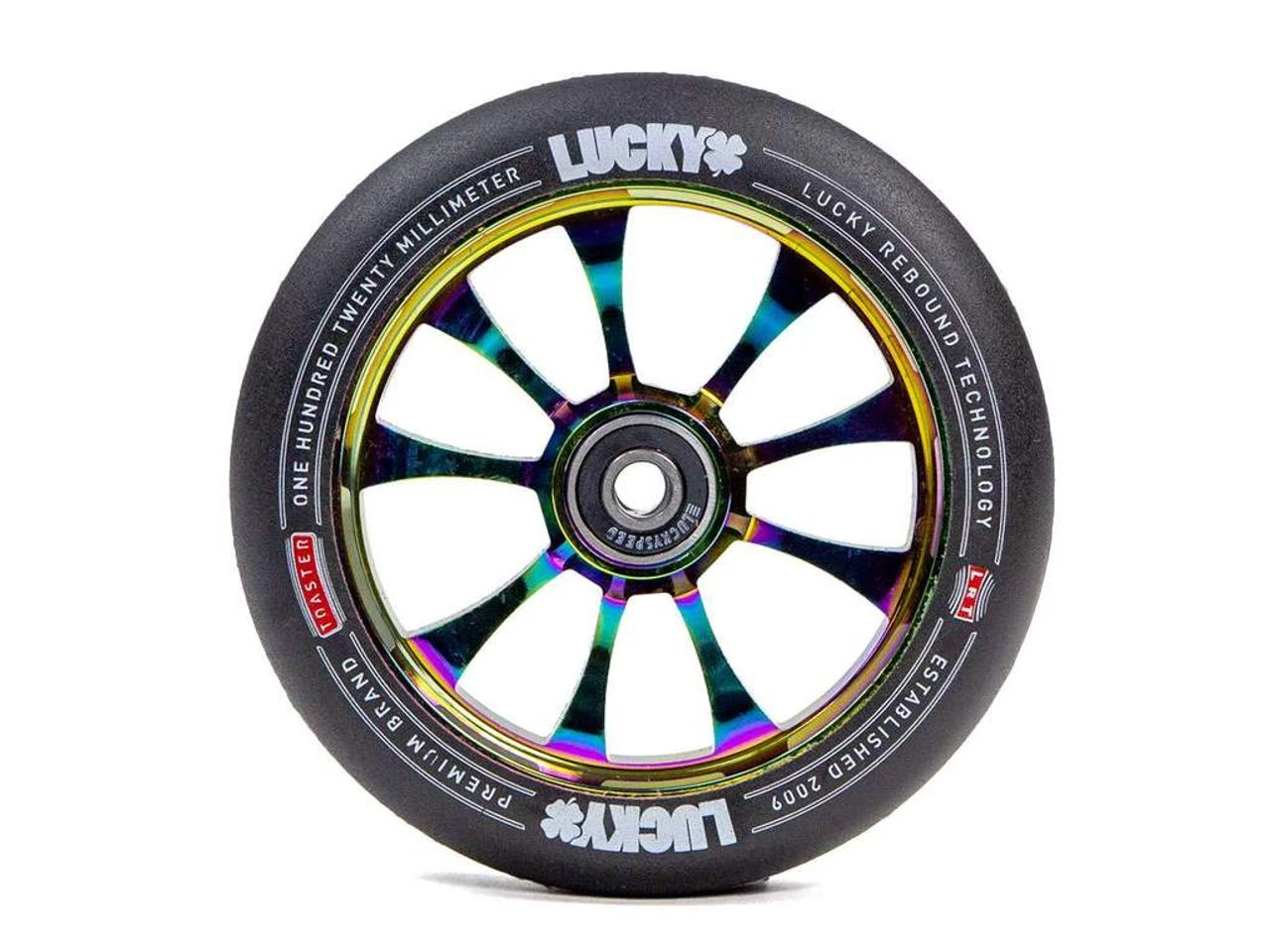 The Lucky Toaster 120mm scooter wheel features Lucky Rebound Technology™ (LRT™), a combination of high-performance urethane, a new pouring process, and a proprietary curing method which gives these wheels a grippy, fast, and buttery roll.