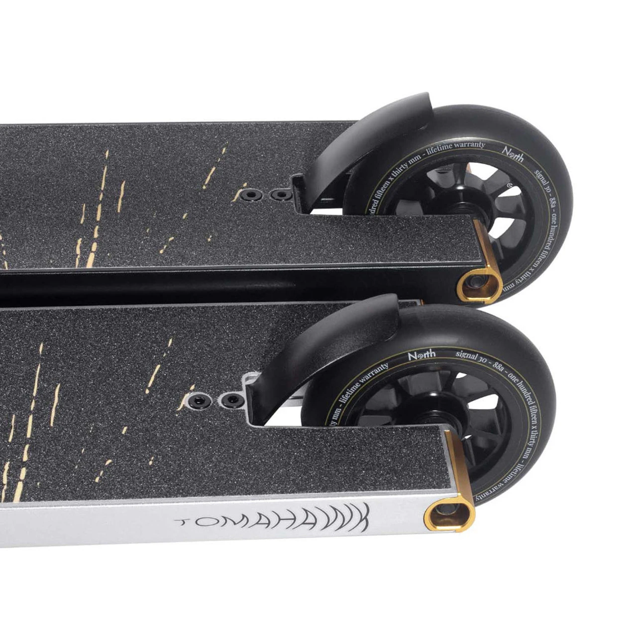 The awesome components along with the killer paint finishes and unique graphics all tie the tomahawk together nicely, paired with such a versatile design we are confident the tomahawk is everything one could want out of a complete scooter.