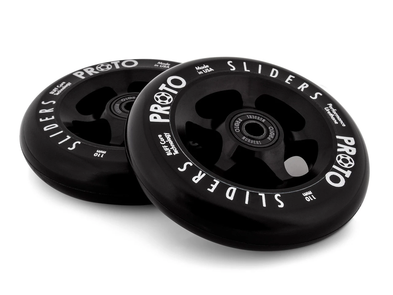Harder, stronger and durable. Sliders™ are formulated for high-impact and responsiveness. Featuring BUFF Core Technology which helps absorb impact, reduce de-hubbing and create a smoother ride. All PROTO wheels are manufactured with bearing removal slots for quick and easy replacement. All PROTO wheels are pre-installed with PROTO Murders bearings. Limited 90-day warranty against chunking and de-hubbing. Made in California!