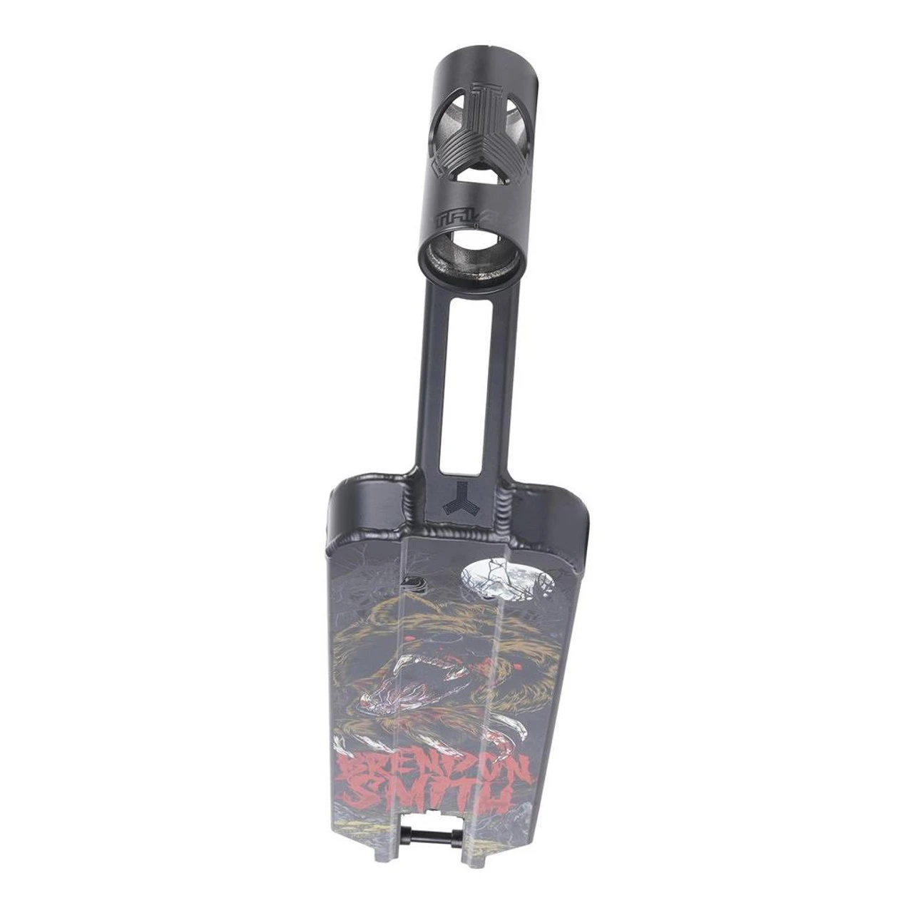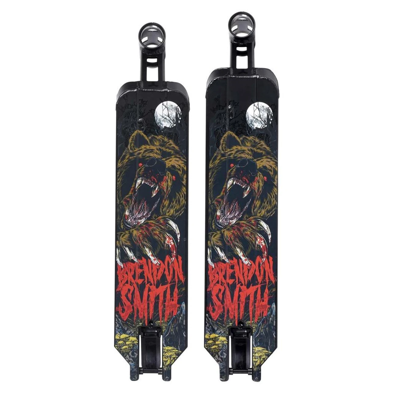 Arguably the greatest of all time now has his first Triad signature deck. We all know what Brendon is capable of on a scooter, so we wanted to develop a product that allows him to do what he does without impediment. A lightweight, perfectly balanced deck made from only the best materials available. Complete with his full length hand drawn artwork from a world renown artist with details previously unseen in the scooter industry. The back end features our Mini Gridlock system that eliminates the use of spacers and has been designed to fit pegs with no issues.